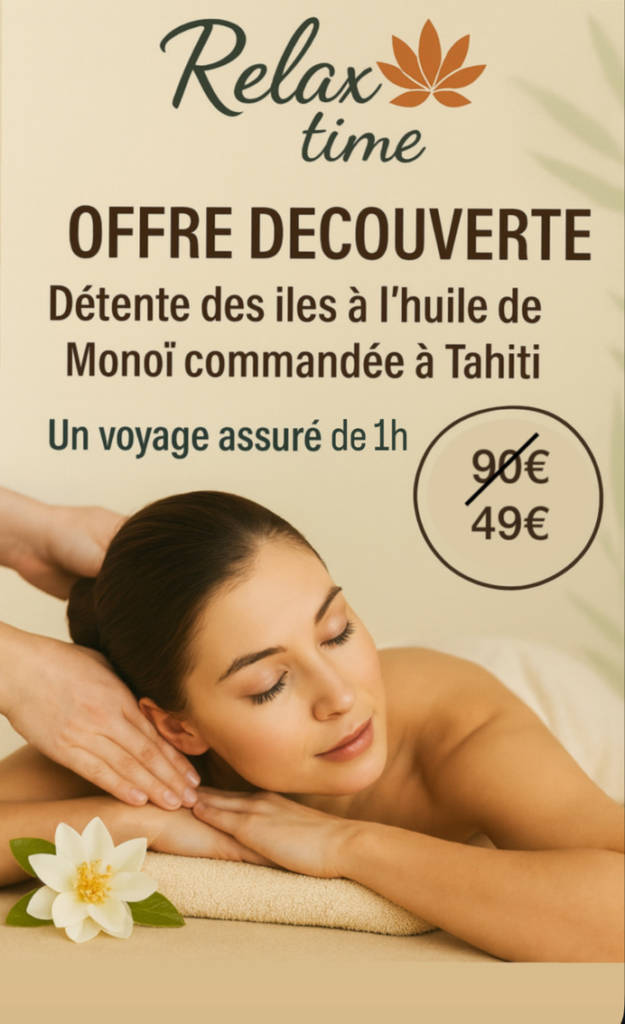 Chaque nouveau client a la possibilité d’avoir un tarif préférentiel pour une première prestation.Un massage “détente des iles” est proposé